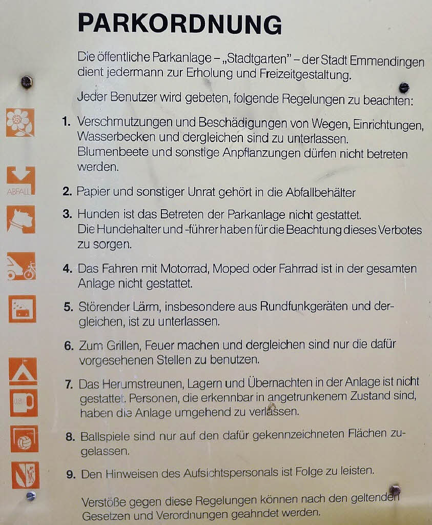Mattar_Tharkari 6 Posted July 10, 2013 (edited) It's an important worldwide problem though Cash - probably deserves it own thread, take a look at this! I think Adolf Hitler escaped at the end of WW2 and is now running German parks! Sieg parkordenung!: http://www.golm-portal.de/images/2009golmparkordnungtable100.jpg http://ais.badische-zeitung.de/piece/03/a4/80/d0/61112528.jpg http://www.surfstoff.de/wherigo/gifs/gartenordnung.jpg http://blog.klausenerplatz-kiez.de/images/schlosspark_parkordnung1_112007.jpg No drunks, No music, No Dogs, No sitting in chairs, No camping, No pic-nics, No BBQs! (Unless Tonci was just trolling and derailing the thread, being an ex-moderator(not here) I'm sure that couldn't be so?) Edited July 10, 2013 by Mattar_Tharkari Share this post Link to post Share on other sites