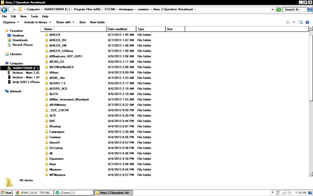 orcinus 121 Posted August 8, 2013 "I have a ton of mods installed." Does this happen without mods in vanilla 1.62? If not you'll have to hunt out the conflict, which can be quite time-consuming. You could use the file list for COWarmod as a guide to which of your mods will work together, then youhave to identify which one(s) of the rest are causing the problem. Aha - the next image in the photobucket series shows an ArmA II Launcher window with an error message (when you click in the mod list) that says it can't find the file ace_clientside_config.hpp n the UserConfig. That won't be helping :) Share this post Link to post Share on other sites