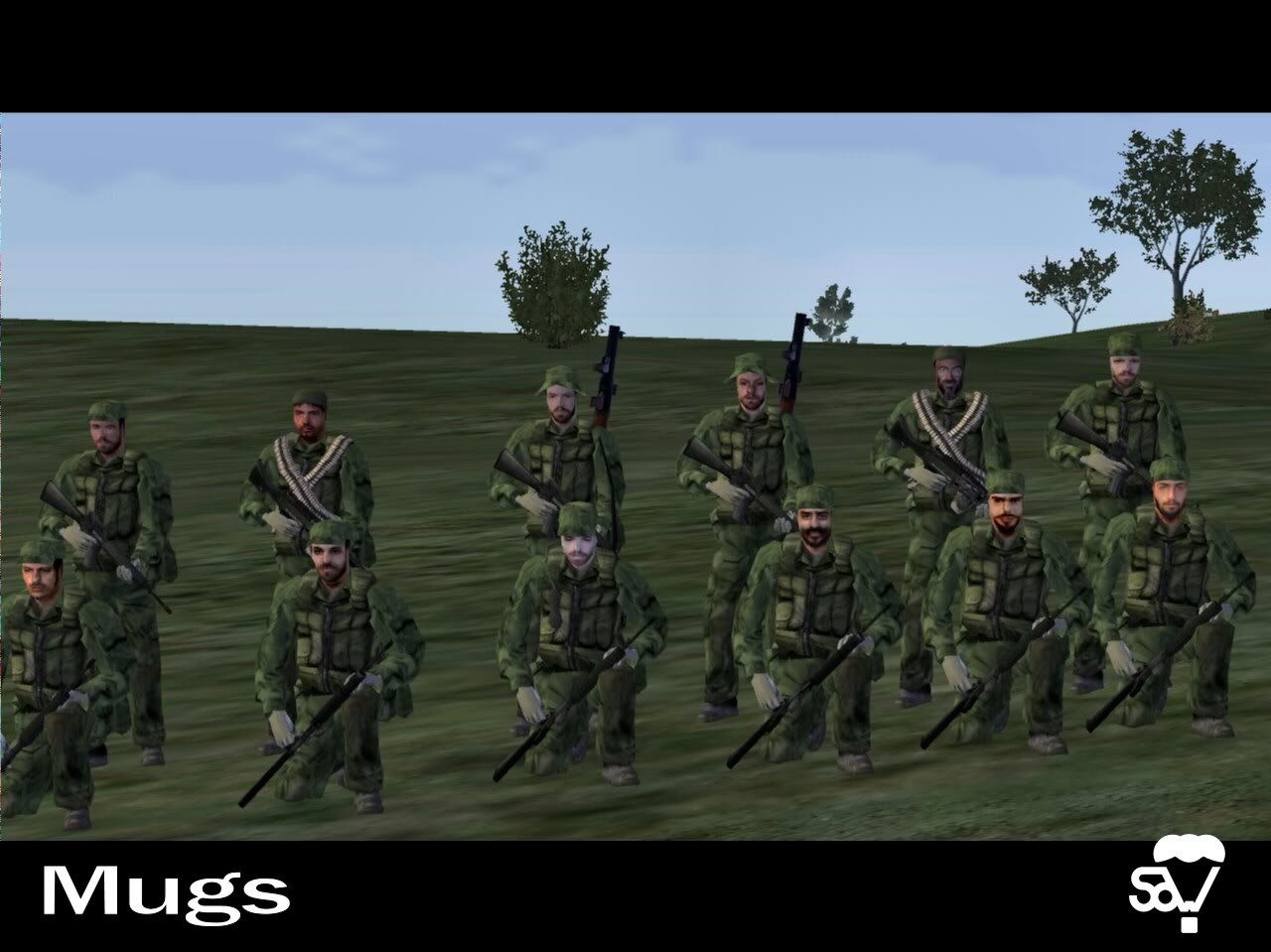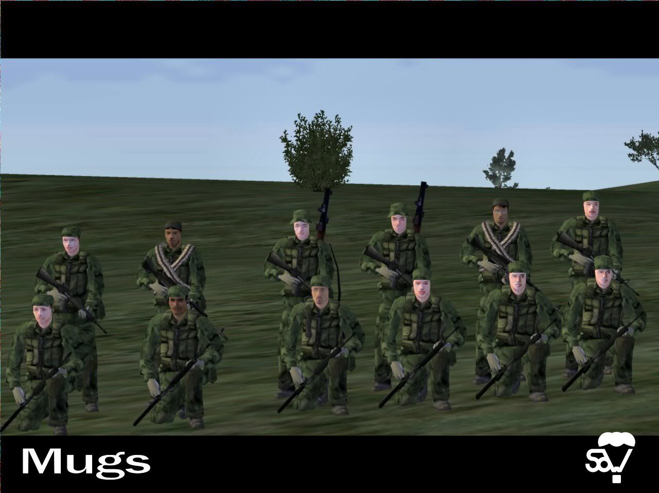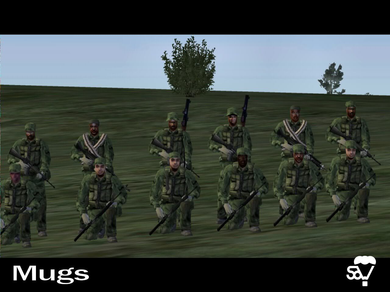 AgentFox2 0 Posted July 21, 2006 We've released a small addon we call "SOW Mugs". You can find it here. Direct link Mirrors appreciated! It's a compilation of a lot of face addons with some random scripts to assign to units. The idea is that you could have more diverse units by changing faces of unit addons to fit different ethnicities/types. Changelog Version 1.2 - Added game logic for mission makers to require SOW_Mugs to play a mission Version 1.1 - Added some Farmland and Lost Brothers faces. - Modified the "Maj. Gen. Garrison" face to be less creepy. Version 1.0 -Public release Current Categories - with more to hopefully follow Caucasian/White African/Black Asian Middle-Eastern Camouflage Balaclava Helmet Credits Liquidsnake BAS Suchey CodeBlue Laser Iraq Mod: Unforseen Circumstances OFPD AfghanEveron SEB Unsung BOH Farmland Lost Brothers Screenshots: Middle-Eastern African Caucasian Asian Camouflage Balaclava Helmet shadows This is a well-rounded pack, but we need your help... If you would like to see any faces in this pack, let us know! If you have any faces to contribute, let us know! Enjoy and take care! - Sinews of War Team Share this post Link to post Share on other sites